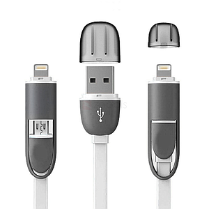 2 in 1 8pin+Micro USB to USB Cable Charge Data Sync White