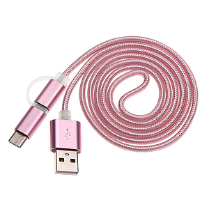 2 in 1 Micro USB & USB-C Charge Sync Cable Rose Gold